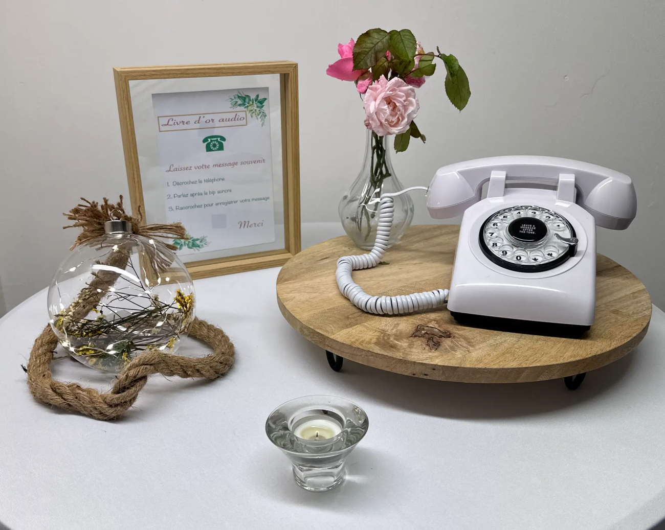 Personnalisez l’annonce comme vous le souhaitez, puis vos convives n’ont plus qu’à décrocher le téléphone, laisser leur message après le bip puis raccrocher pour enregistrer.