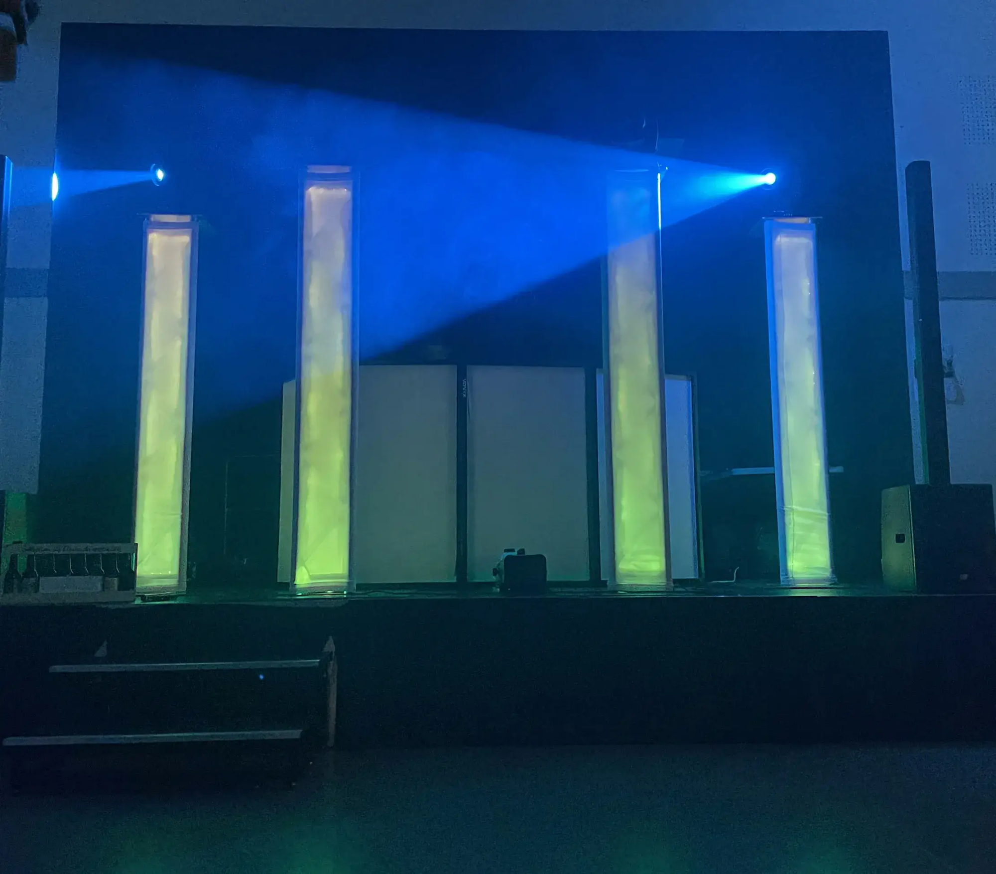 Pour les prestations DJ, nous pilotons les effets d'animations en DMX afin de se raccorder à l’ambiance de la sono et de répondre aux demandes particulières (exemple : faisceau lumineux concentré sur la piste de danse lors du slow et au rythme de la musique).